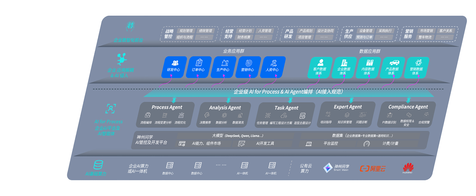 端到端的一站式AI工作空间深度融合了从企业战略规划到日常经营的全流程业务板块,,定向解决车企内部领域多、、、部门多、、、、链条长、、、、场景碎片化等难题,,,支持车企快速构建以AI为核心的生产力写作体系,,,,实现任务执行与AI能力的无缝集成与交互